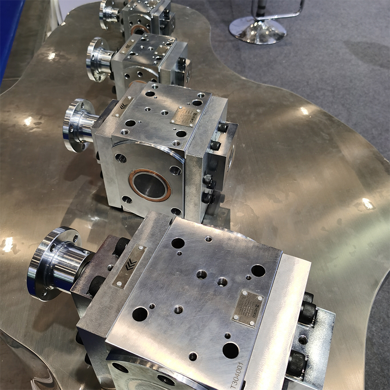 熔體齒輪泵與螺桿擠出機配合使用可以提高擠出產量和質量,降低能耗,尤其在精密擠出成型方面起到其它加工手段無法替代的作用。目前它可加工的物料幾乎涵蓋了大部分高分子材料,如PE、PC、PP、PVC、PET、聚砜、聚酯、含氟聚合物、熱塑性彈性體及橡膠等。